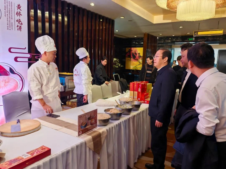 黄桥味道,香飘上海。在美食体验区,黄桥文旅还带来了黄桥烧饼、黄桥肉渣、裕泰和茶叶、祁巷香荷芋等特产,吸引了众多游客驻足品尝。黄桥烧饼的酥香、肉渣的咸香、裕泰和茶叶的清香、香荷芋的糯香,无不让人回味无穷,仿佛置身于黄桥古镇,感受着千年文化的熏陶。